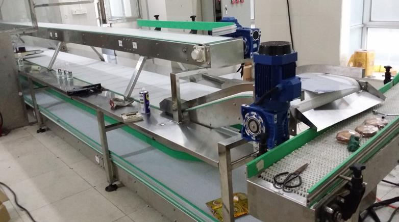 在月餅包裝機上月餅已經包裝完結,不需求和月餅直接觸摸就可以用價格相對實惠的運送帶。